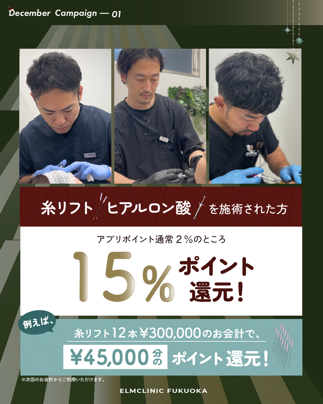 エルムクリニックでは各院ごとに毎月お得なキャンペーンを実施しております。